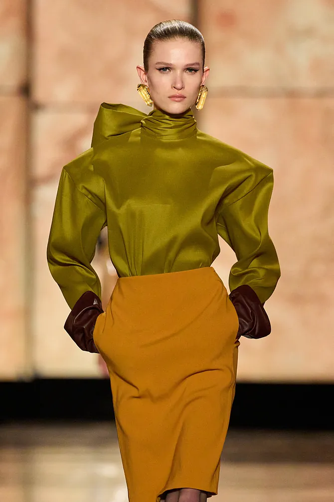 Esta temporada, los volantes se desprenden del dramatismo barroco para convertirse en detalles de movimiento. Los veremos en blusas livianas, vestidos envolventes y faldas que juegan con el viento. Siempre en caída, siempre desde la fluidez. No buscan volumen exagerado, sino un movimiento orgánico que transmite libertad y feminidad sin rigidez.
